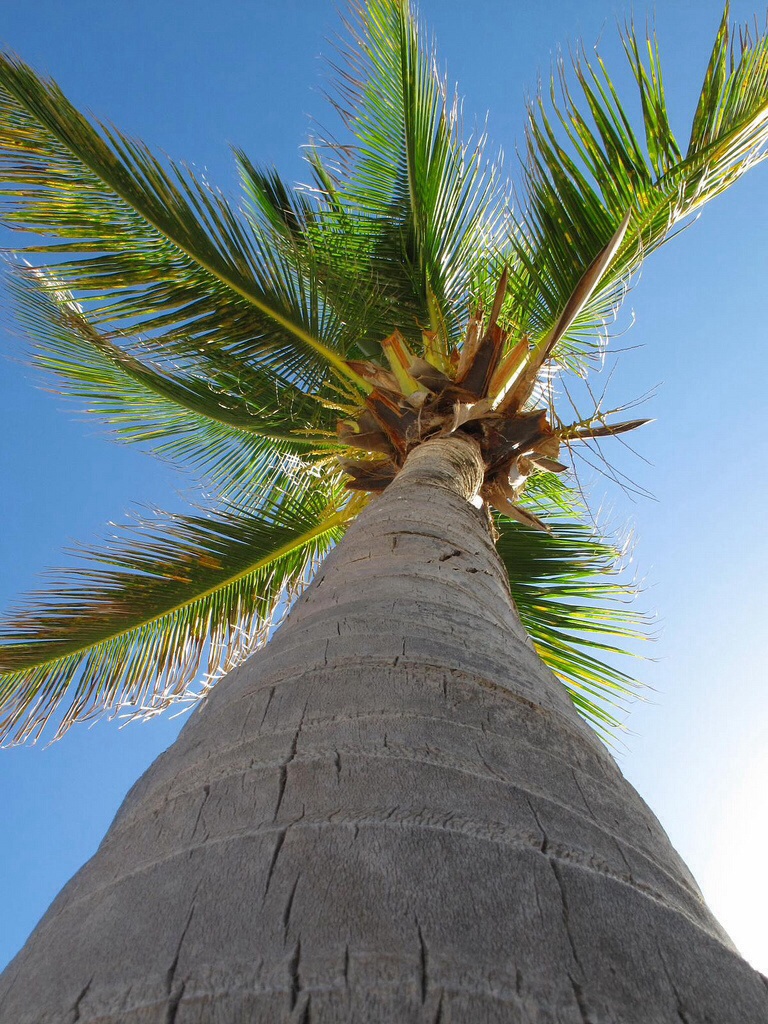 Palmera caribeña en St. Kitts & Nevis vista desde abajo.